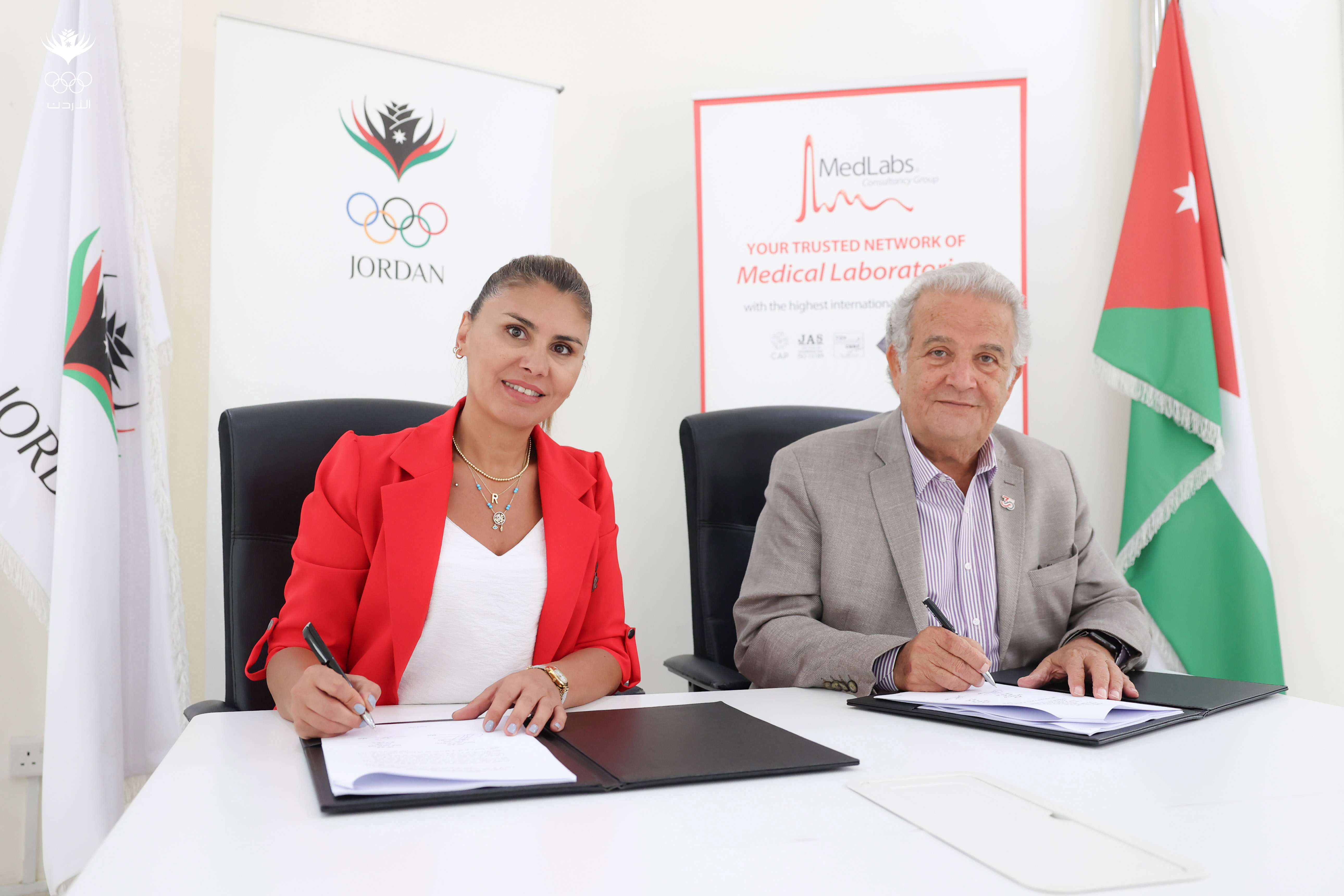 وقد تم توقيع الاتفاقية من قبل رئيس مجلس إدارة مختبرات "مدلاب"؛ الدكتور حسيب صهيون، والأمينة العامة للجنة الأولمبية الأردنية، السيدة رنا نظمي السعيد ضمن حفل توقيع بوجود عدد من أفراد العمل المعنيين بهذه الاتفاقية من كلا الطرفين.