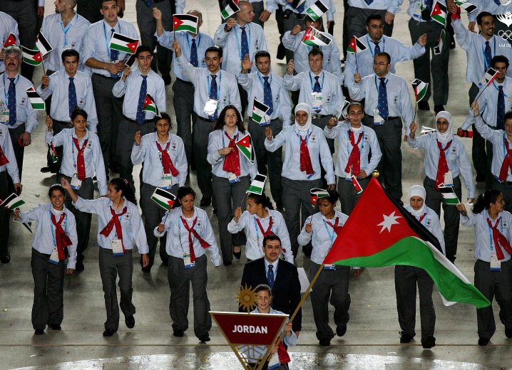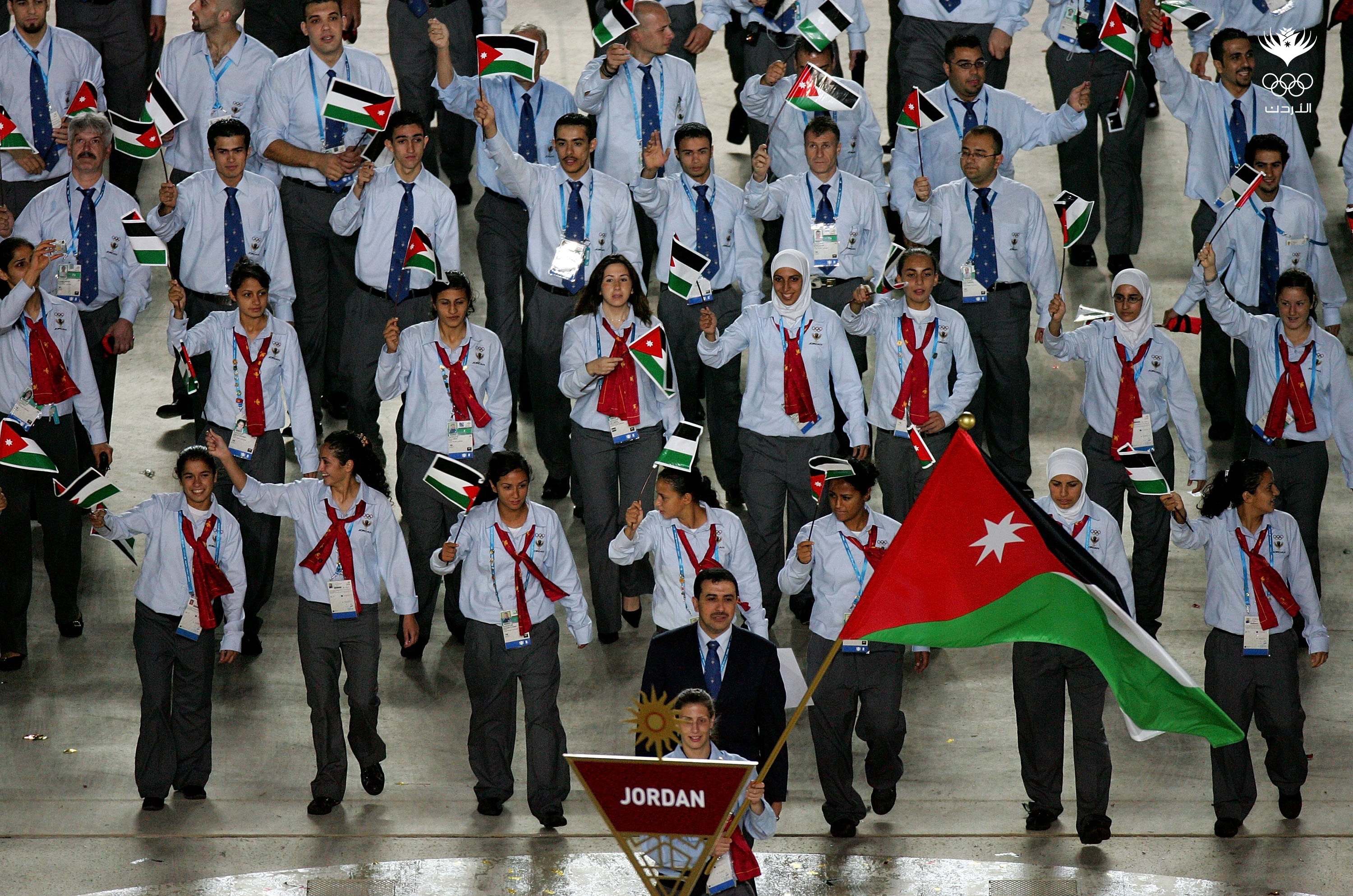 وحظيت لاعبة المنتخب الوطني للتايكواندو، ندين دواني، بشرف حمل العلم الأردني في حفل الافتتاح والذي أُقيم في ستاد خليفة الدولي.