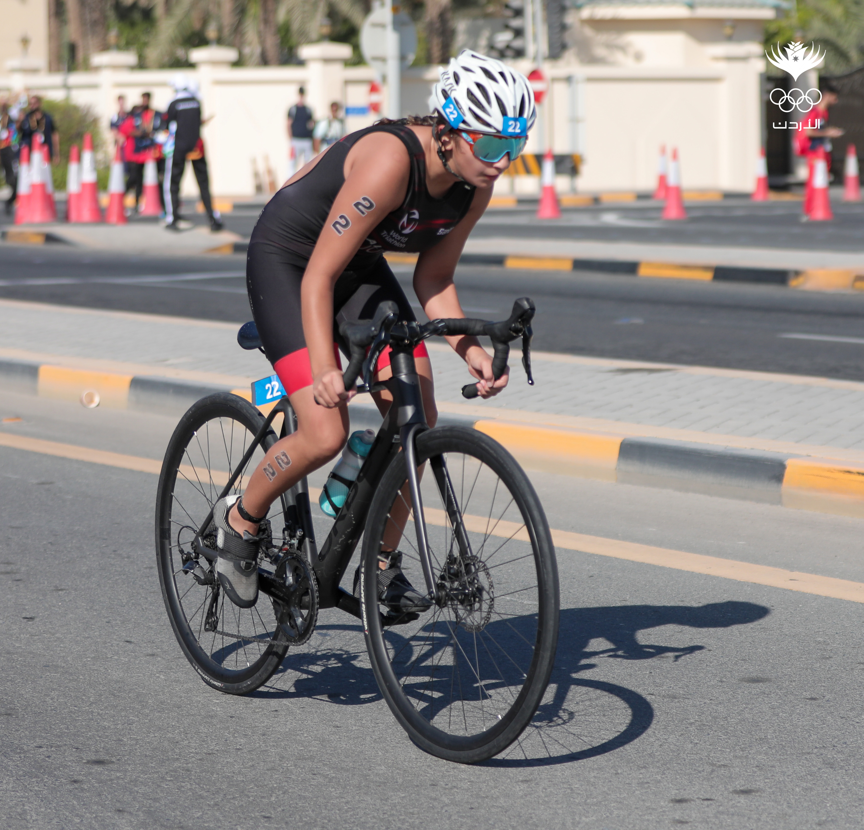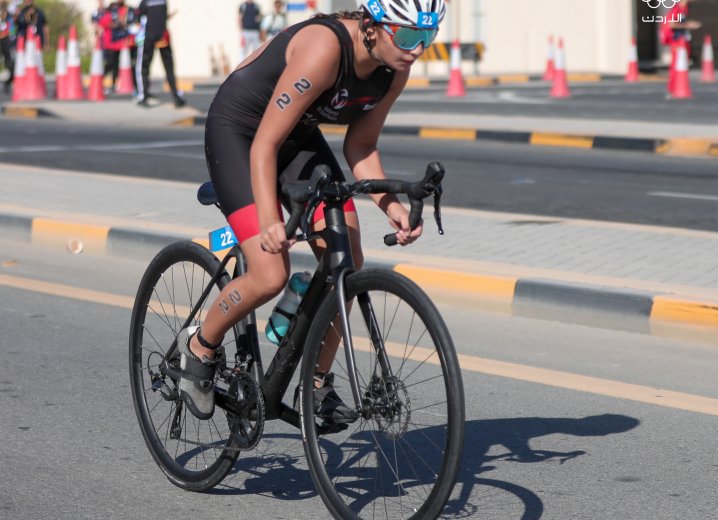 واشتمل سباق الترايثلون والذي شهد مشاركة ٢٤ لاعبة على ٤٠٠ متر سباحة، و٨ كم دراجات، و٢.٥ كم ركض.