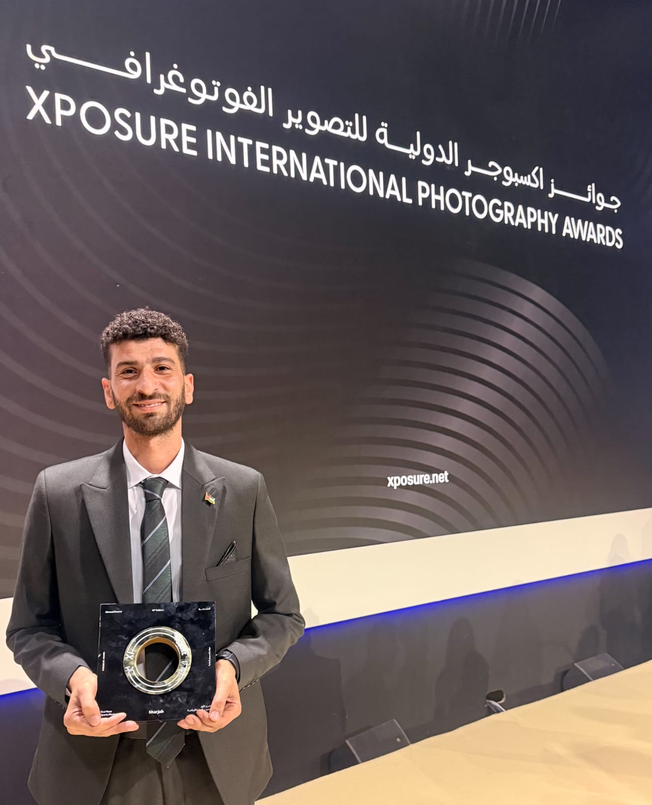 حصل الزميل المصور في اللجنة الأولمبية الأردنية أحمد ضمرة، اليوم الجمعة، على جائزة المركز الأول ضمن فئة "تصوير الحركة الرياضية" في المهرجان الدولي للتصوير "اكسبوجر 2026"، الذي ينظمه المكتب الإعلامي لحكومة الشارقة في منطقة الجادة، ويستمر حتى الرابع من شباط الجاري.